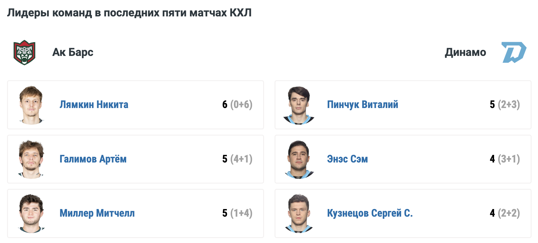 Лямкин также набирает очки уже шесть матчей подряд.