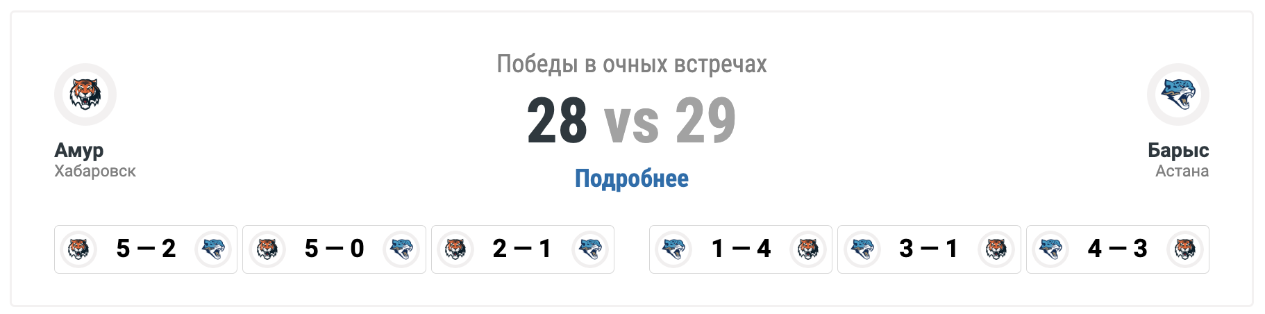 "Барыс" - 29 побед, "Амур" - 28 побед в рамках КХЛ.