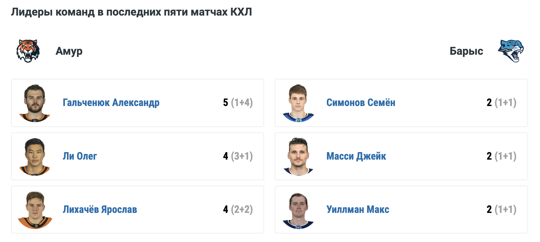 У "Амура" личную результативную серию из трёх матчей имеет Александр Гальченюк (1+3);