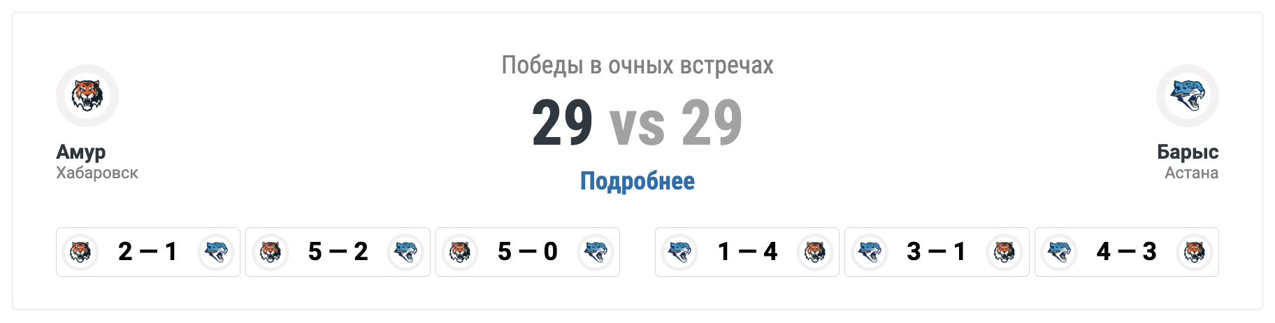 В истории КХЛ соперники обыгрывали друг друга по 29 раз.