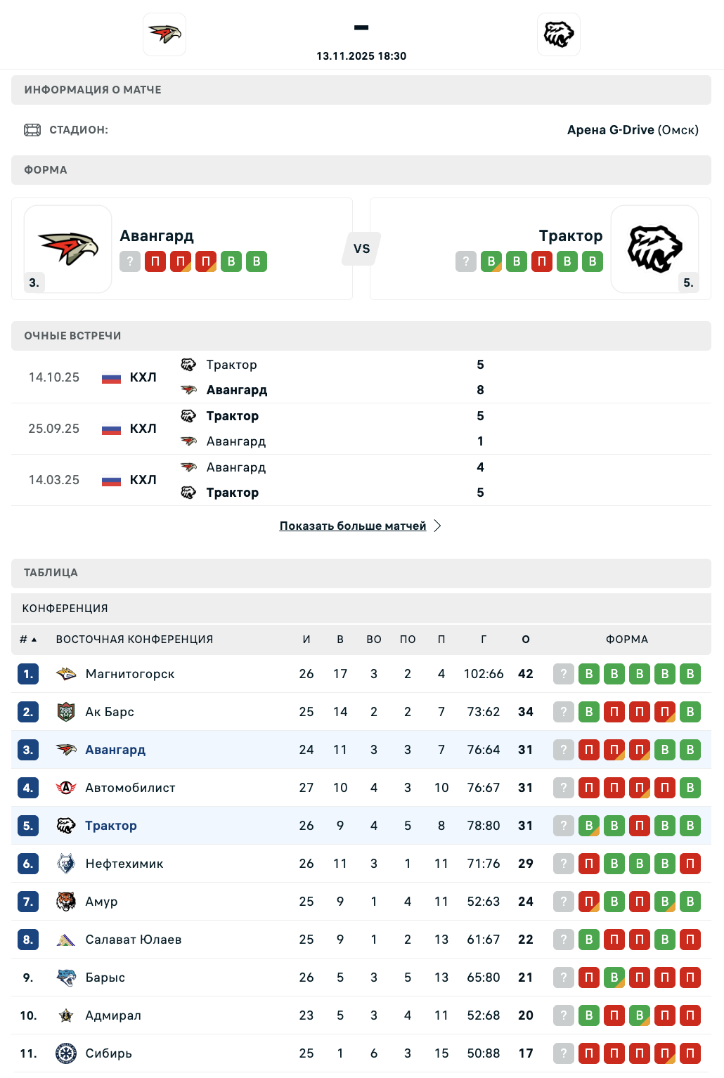 - "Авангард" выигрывал стартовый период в 11 из 19 последних матчей.
