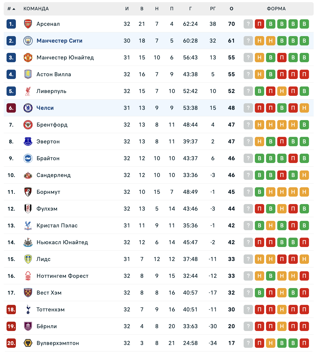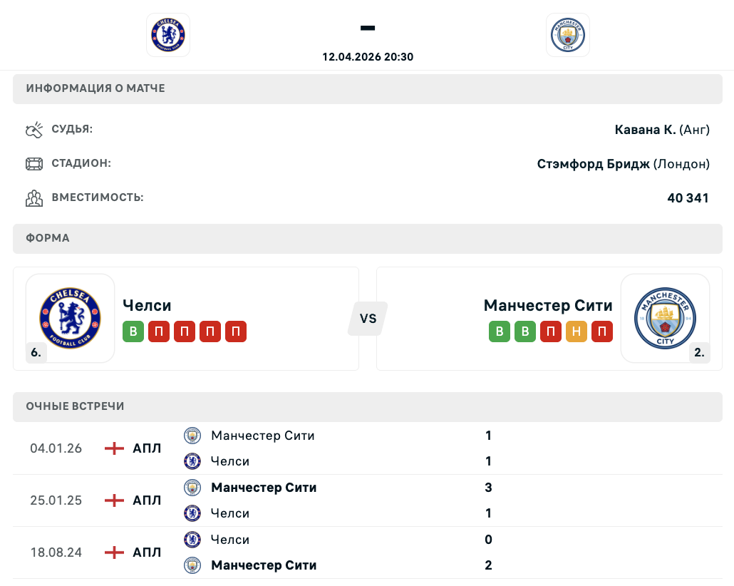 "Челси" примет "Манчестер Сити" в одном из центральных матчей тура АПЛ. Для лондонцев эта встреча может стать определяющей в борьбе за место в Лиге чемпионов, тогда как команда Хосепа Гвардиолы продолжает погоню за "Арсеналом" в чемпионской гонке.
