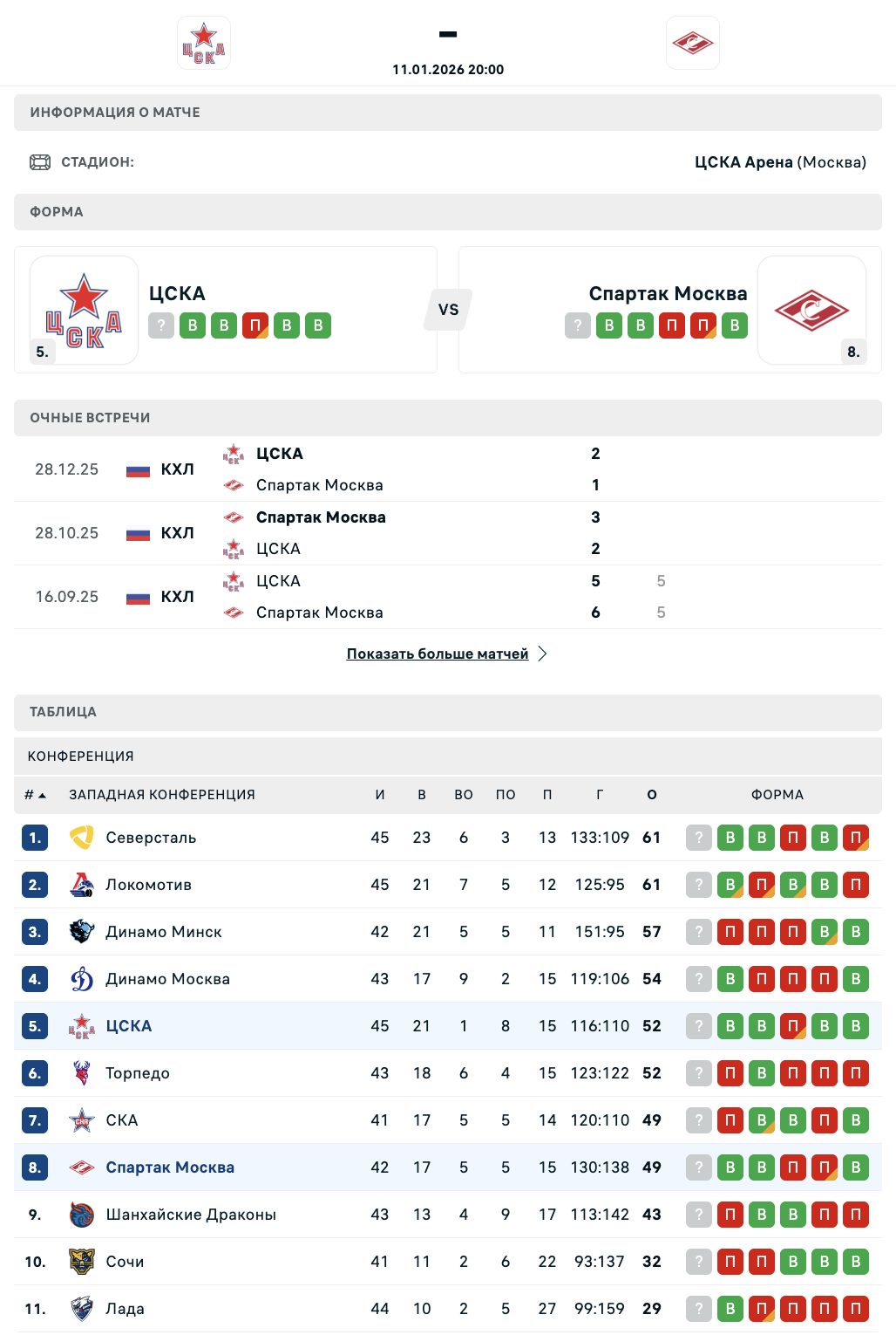 11 января в Москве состоится матч регулярного чемпионата КХЛ - ЦСКА примет "Спартак". Начало - в 20:00 по времени Казахстана.