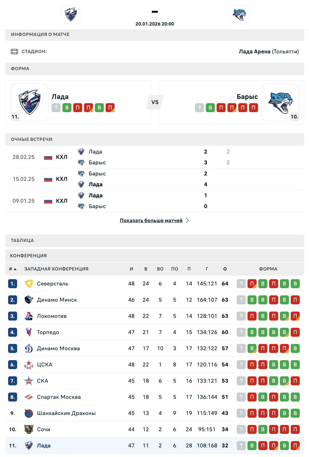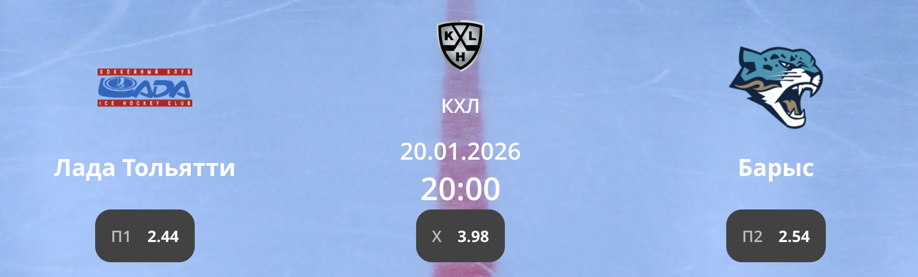 20 января в Тольятти состоится матч регулярного чемпионата КХЛ - "Лада" примет "Барыс". Начало - в 20:00 по времени Казахстана.