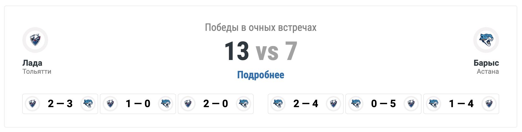 В истории КХЛ "Лада" выиграла 13 из 20 очных встреч с "Барысом".