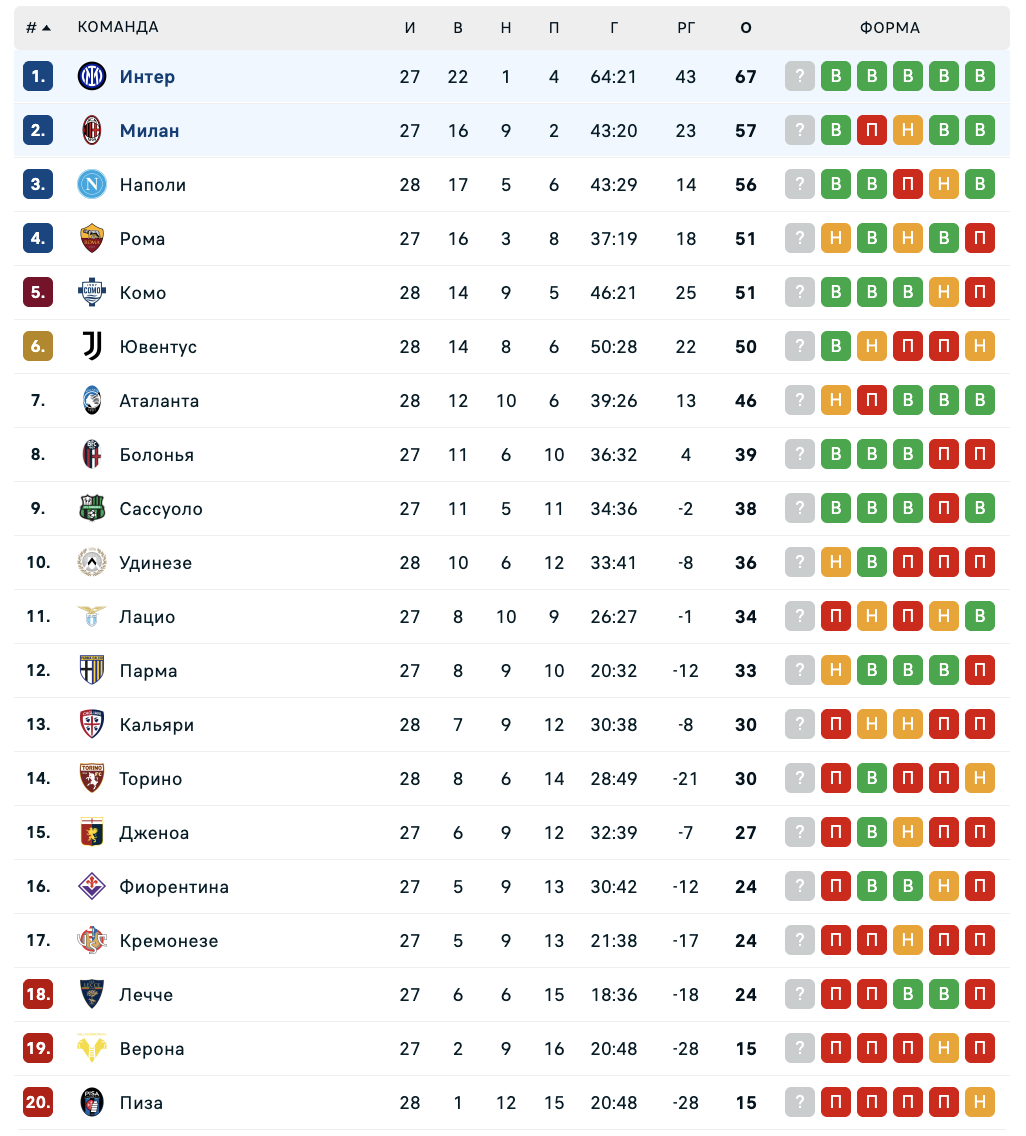 Для "Интера" последние недели также получились неоднозначными. После вылета из Лиги чемпионов УЕФА команда одержала победу над "Дженоа" (2:0), но затем сыграла безголевую ничью с "Комо" в Кубке Италии.