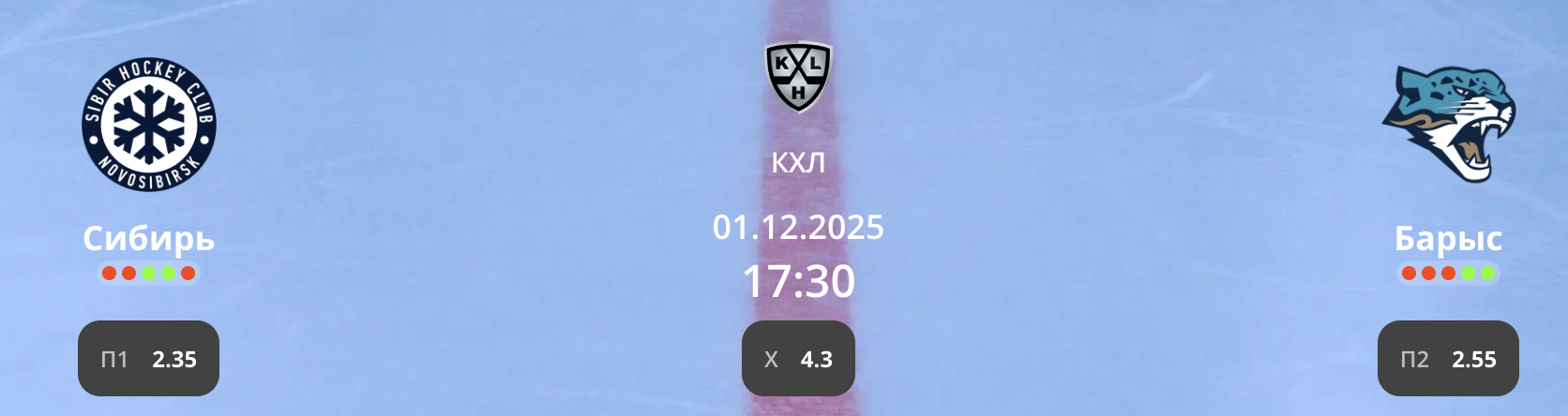 Сибирь - Барыс: варианты от аналитиков на матч КХЛ